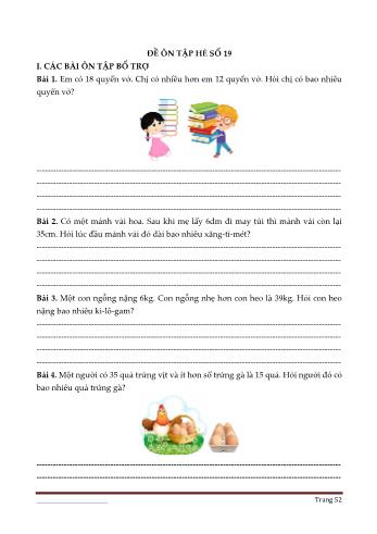 Đề ôn tập hè Toán Lớp 2 - Đề số 19 (Có đáp án)